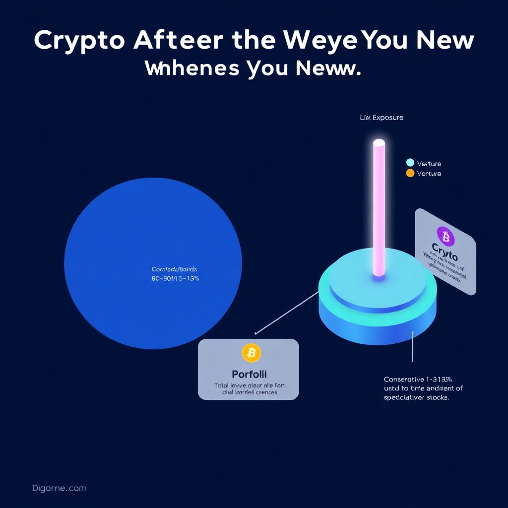 Если разбирать без романтики, криптовалюта — это высоковолатильный спекулятивный актив с неопределённым кэшем-флоу и сильной зависимостью от настроения рынка. В языке классических финансов ей ближе всего хай‑бета акции малой капитализации, только с ещё более «рваным» профилем доходности. При этом по структуре корреляций крипта часто слабо связана с облигациями и частично — с крупными акциями, что делает её кандидатом на роль «специи» в портфеле. [Диаграмма в тексте: Круг — «Портфель», внутри три сектора: «База (акции/облигации)» ~80–90 %, «Альтернативы» ~5–10 %, «Крипта» ~1–5 %.]